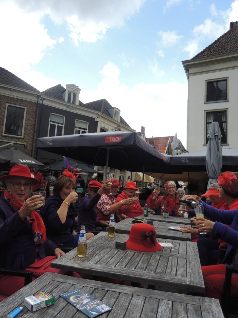 Ze wist ons veel historische wetenswaardigheden en anekdotes te vertellen van deze prachtige Hanzestad. We dwaalden door straatjes en steegjes, bewonderden fraaie tuintjes, kerken geveltjes etc. Een hoedenwinkel had zelfs speciaal voor ons rode hoeden ingeslagen,