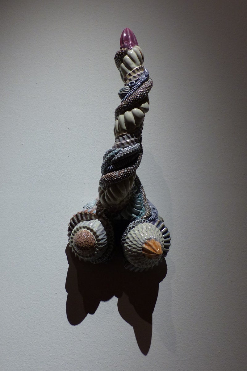 Als kleurige blommen komen van alle kanten 25 dames in fleurig paars/rood de Merk in Workum op lopen om elkaar vervolgens enthousiast in restaurant “it Pottebakkershûs” te begroeten, in het bijzonder Josje, die we een hele tijd gemist hebben. We beginnen natuurlijk met koffie, thee en wat lekkers; daarna lopen we naar de ruimte achter het restaurant, waar vanmiddag beeldhouwster Ruth Vulto Gaube ons laat zien dat aan een abstract beeldhouwwerk meer valt te beleven dan een vluchtige blik doet vermoeden. We zitten in een halve kring om 4 sokkels met een wit, een donkergrijs, een groen en een bruin beeld. Ruth weet het hele gezelschap te boeien door ons te laten nadenken over materiaal, kleur, vorm, grootte, evenwicht, voor/achterkant, glad, ruw en nog veel meer aspecten van elk beeld.