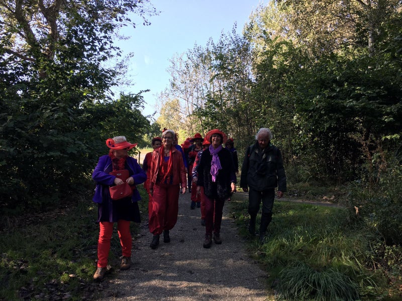 Op zondag 29 augustus, een donkere regenachtige dag, zag men een stoet van rode hoedjes op weg door het Friese land. Wat een mooi landschap, wat zagen de weilanden en de koeien er mooi uit in de regen. Het was echt genieten deze tocht.
