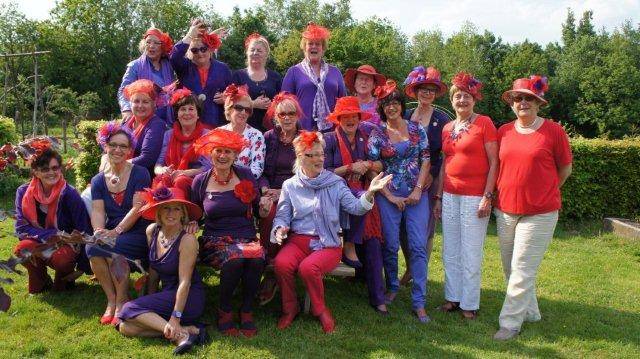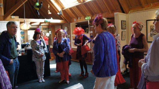 Maar vandaag arriveren 20 paars/rood geklede dames echt op de Brink in Vledder, voor een rondleiding in Het Museum Voor Valse Kunst.
