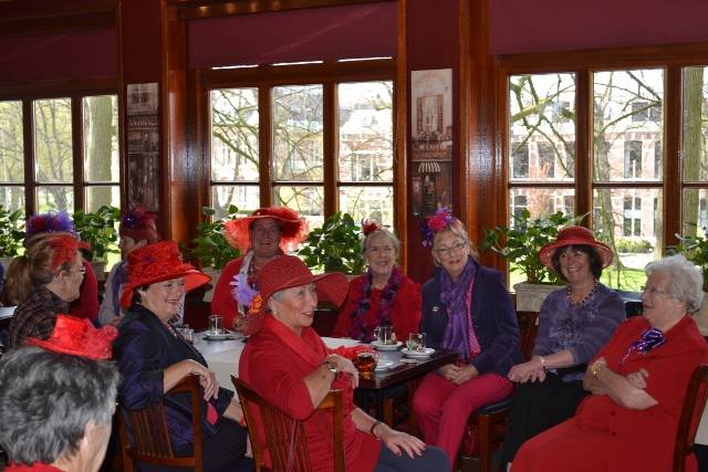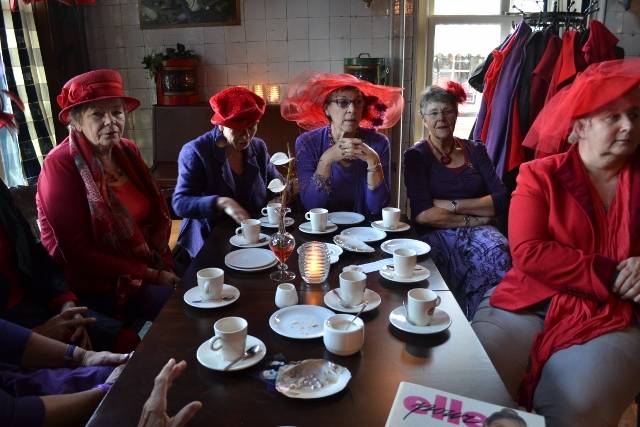 Deze zondagmiddag zijn maar liefst 28 Rode Hoeden in Grand Café "de Koperen Tuin" te Leeuwarden.