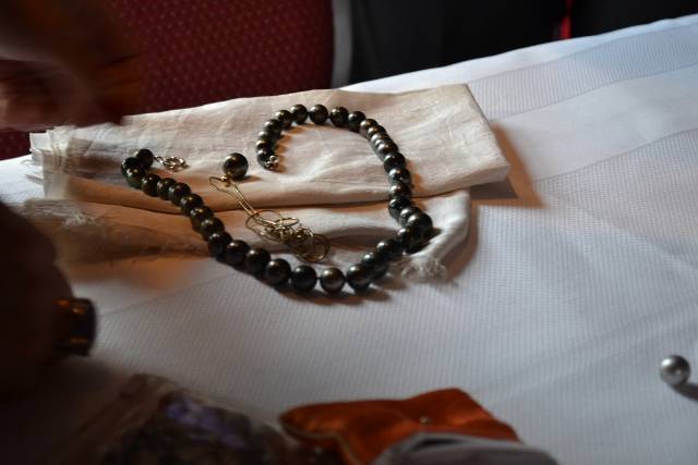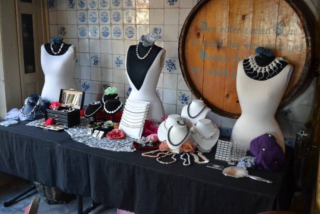Natuurlijk konden er ook sieraden met parels worden aangekocht, een verleiding waar verschillende dames voor bezweken.