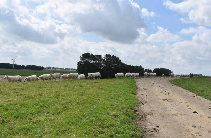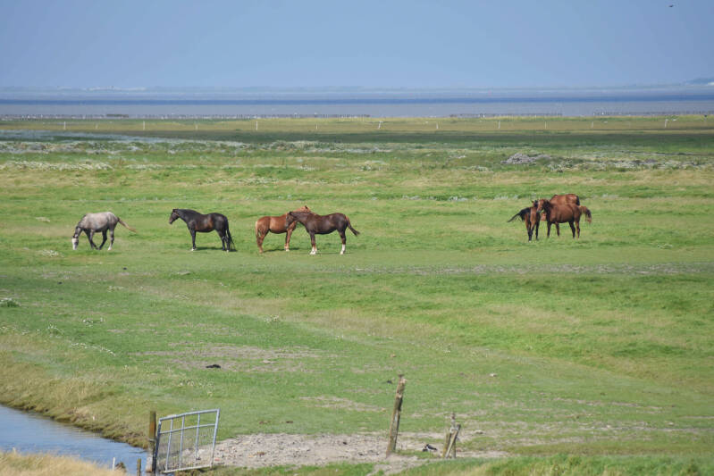 We zien even over de dijk waar de paarden van ons lopen.(Gelske en Ytzen)