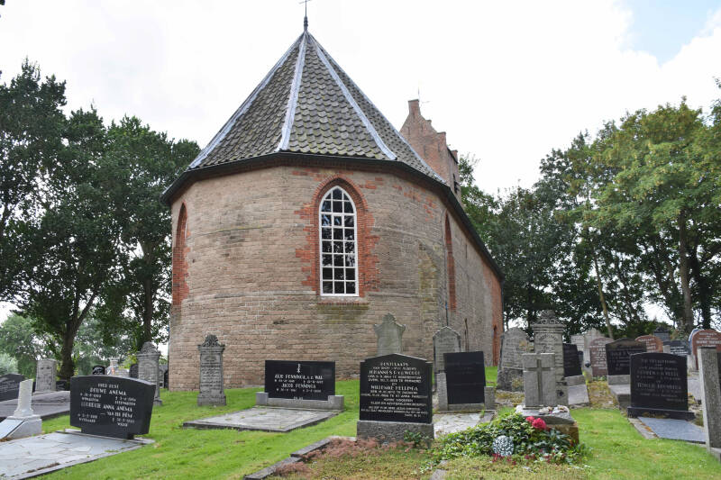 Hierboven staan voor kerkje van Jannum.