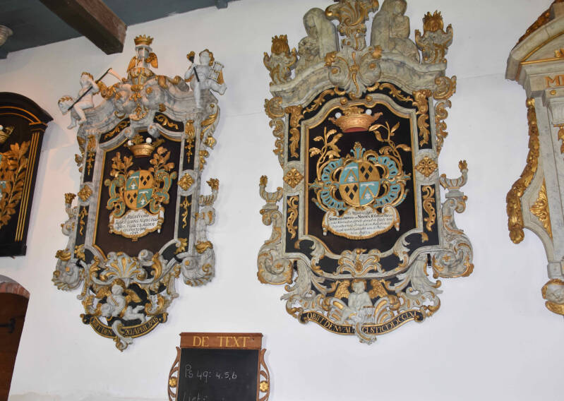 De Adel liet rouwborden maken.In de kerk van Hegebeintum hangen 16 rouwborden. Hier een van Sophia Lucretia van Nijsten.