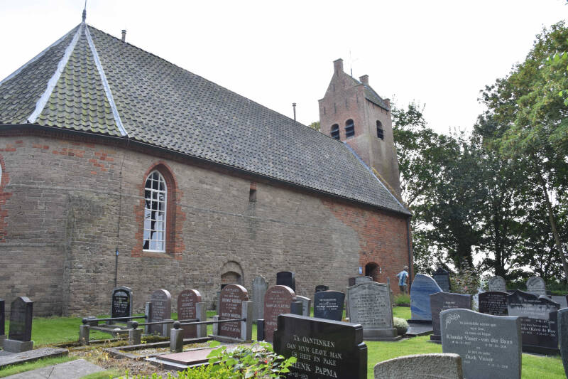 Jan staat met zijn paarden te wachten en brengt ons nu naar kerkje in Jannum.