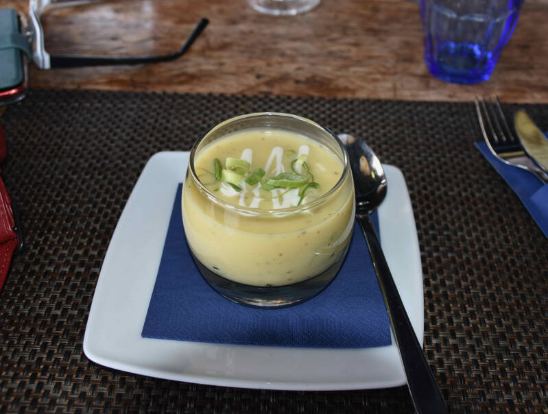 Het is weer ons eerste lunch sinds de Corona van 2020. Heerlijk weer, dus we kunnen buiten zitten.