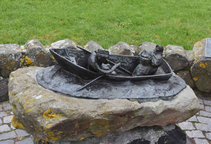 Een standbeeld van een vissersvrouw, die nog een keer achterom kijkt naar de zee, vanwaar haar geliefde had moeten terugkomen.