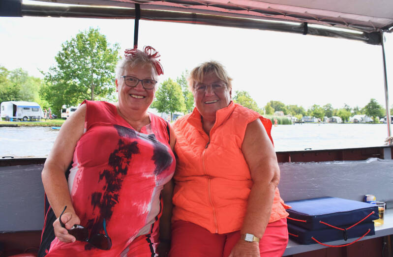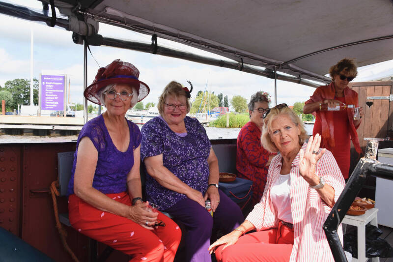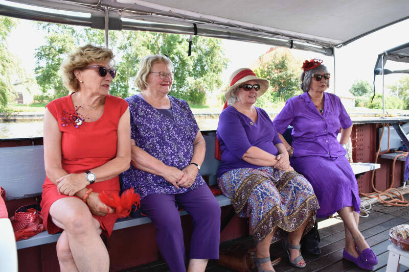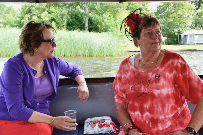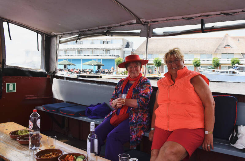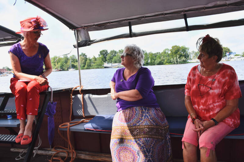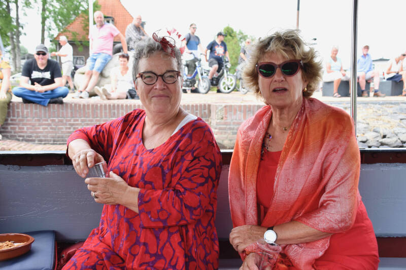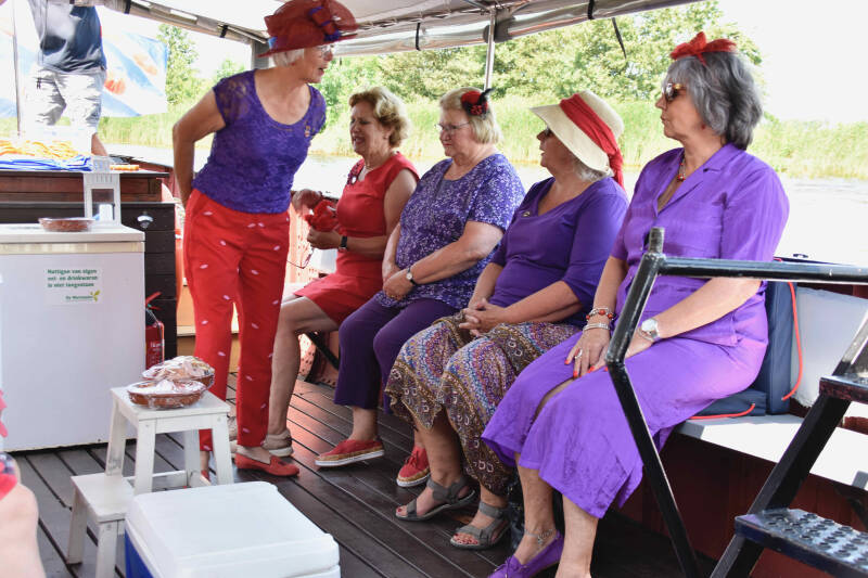 Zo tegen half 2 verzamelen we ons in Warten om een vaartocht te gaan maken met “de Houthandel”; een overdekte praam.