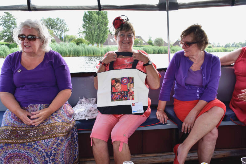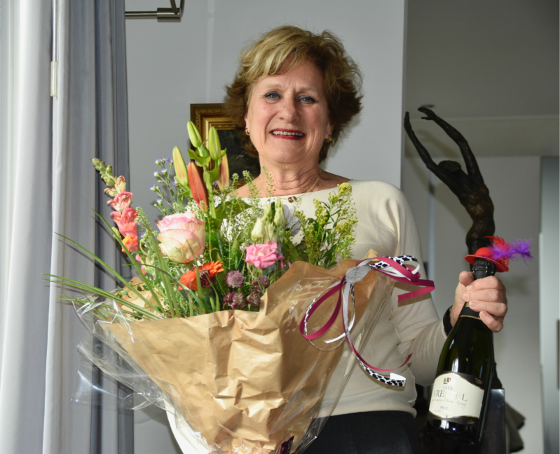 We worden verwelkomd met een glaasje bubbels, waarna Toos een fotoboek ontvangt waarvoor alle leden een bijdrage hebben geleverd.