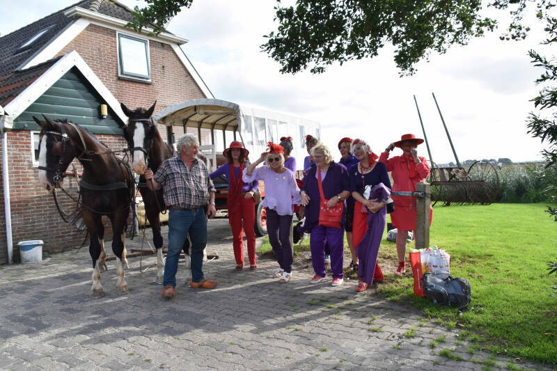 We gaan met paard en wagen , een huifkar waar we met z'n allen in kunnen een toer langs de kerkjes van Hegebeintum en Jannum maken.