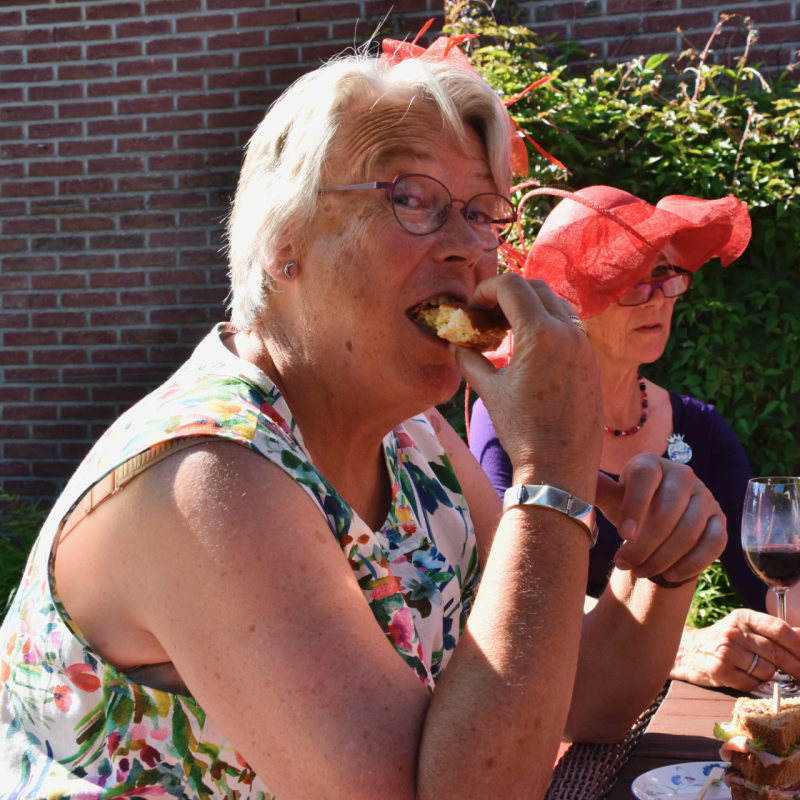 En wel deze keer een extra feestelijke (en zonnige) bijeenkomst in de tuin bij Dieneke in Heerenveen.