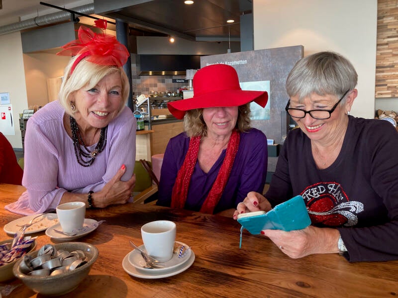 De iets meer gevulde Red Hatters zoeken elkaar altijd weer op.